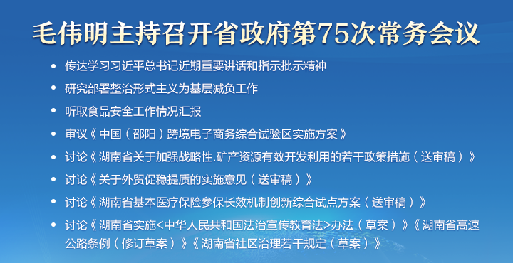 • 毛偉明主持省政府第75次常務會議 部署醫(yī)保參保、外貿(mào)促穩(wěn)提質(zhì)、礦產(chǎn)資源開發(fā)利用等...